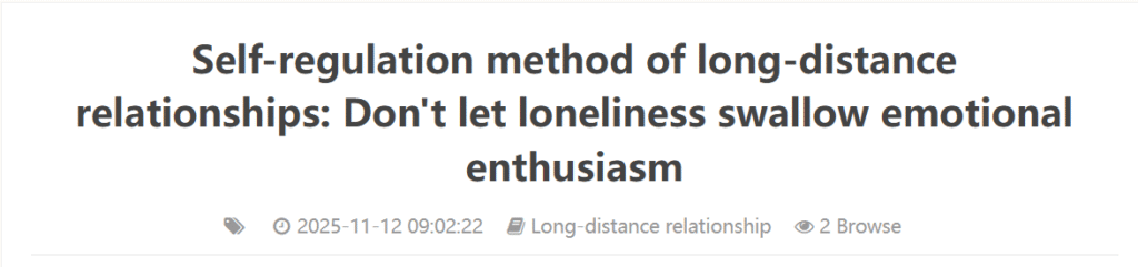 Self-regulation method of long-distance relationships: Don’t let loneliness swallow emotional enthusiasm